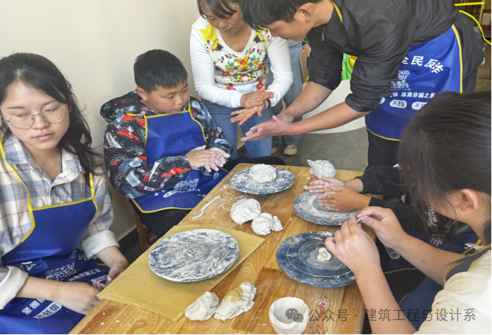 图3:“陶艺传情·感恩母爱”主题活动中,建筑系牙舟陶工作室老师指导与孩子们共同揉泥、塑形、雕刻,创作出一个个充满爱意的陶艺作品。