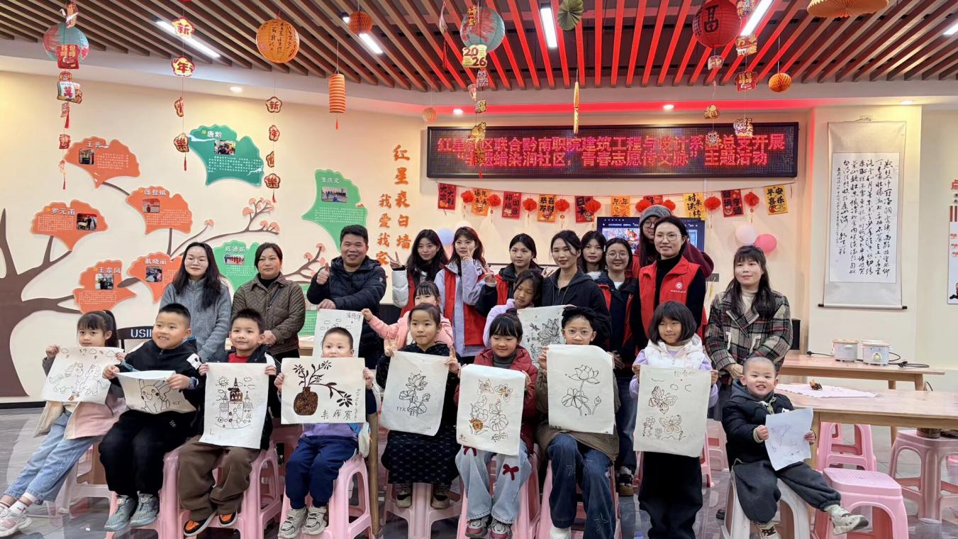 为深入践行雷锋精神,传承中华优秀非物质文化遗产,搭建高校与社区联动桥梁,3月21日,建筑工程与设计系团总支联合都匀市沙包堡街道红星社区,开展“非遗蜡染润社区,青春志愿传文脉”志愿服务活动,为社区6-16岁青少年及亲子家庭带来一场趣味十足的非遗美育体验,活动共计覆盖社区居民60余人。