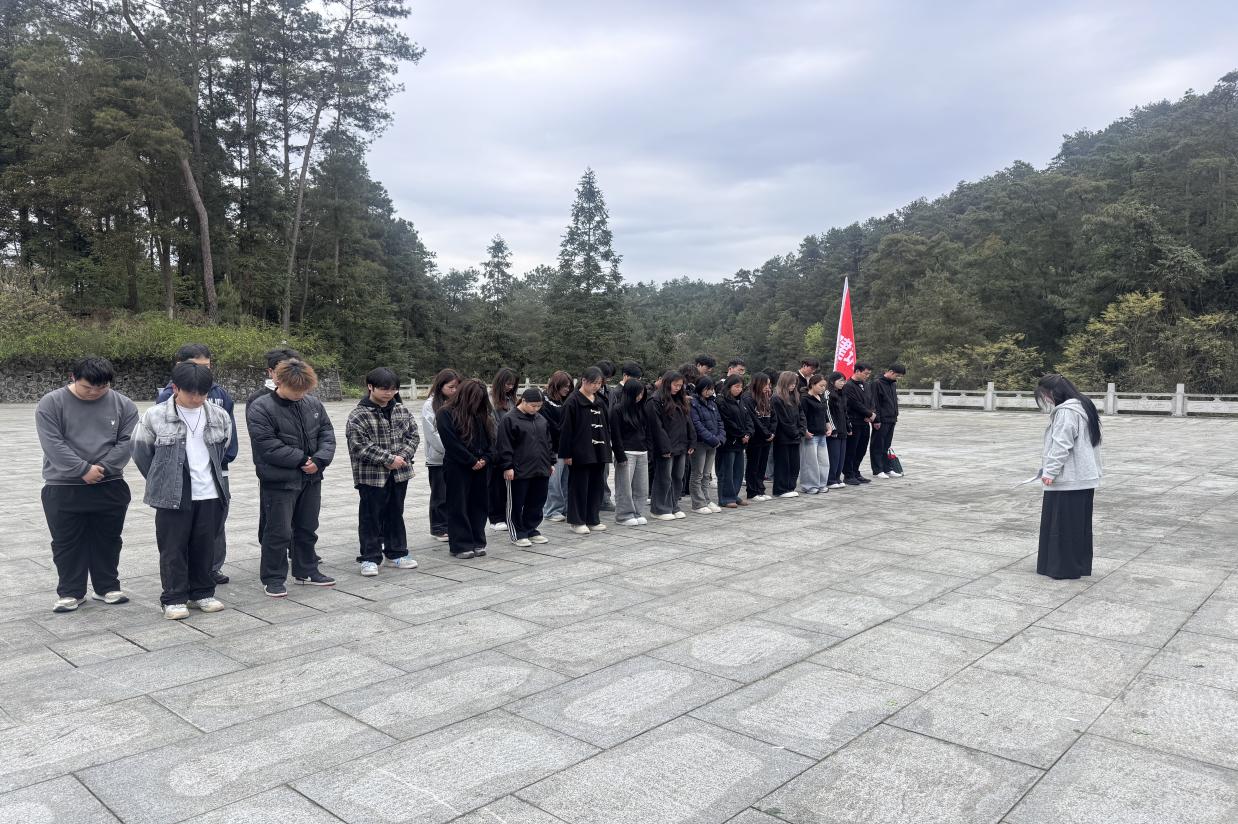 在陵园广场,缅怀仪式正式举行。主持人发表致辞,深情回顾先烈为民族解放、国家富强抛头颅、洒热血的峥嵘岁月,号召全体师生传承英烈精神、勇担时代使命。随后,全场肃立默哀一分钟,向革命先烈致以崇高敬意与深切缅怀,默哀结束后,全体师生集体鞠躬,将对先烈的崇敬与追思融入庄重礼仪之中。