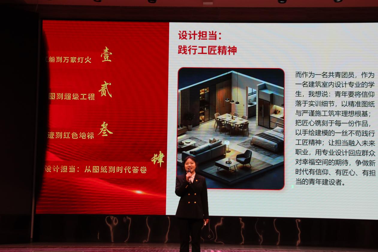 2026年4月21日,学院团委开展的庆祝中国共产党成立105周年暨“百年铸信仰·十五启新章”微团课大赛在南区同向厅落幕。我系学子在激烈角逐中脱颖而出,他们凭借扎实的理论素养、出色的现场发挥,斩获2项荣誉。其中:建筑室内设计专业李思悦同学荣获大赛二等奖,位列高职组第一名;建筑工程技术专业丁本浩同学荣获大赛三等奖,位列高职组第五名。