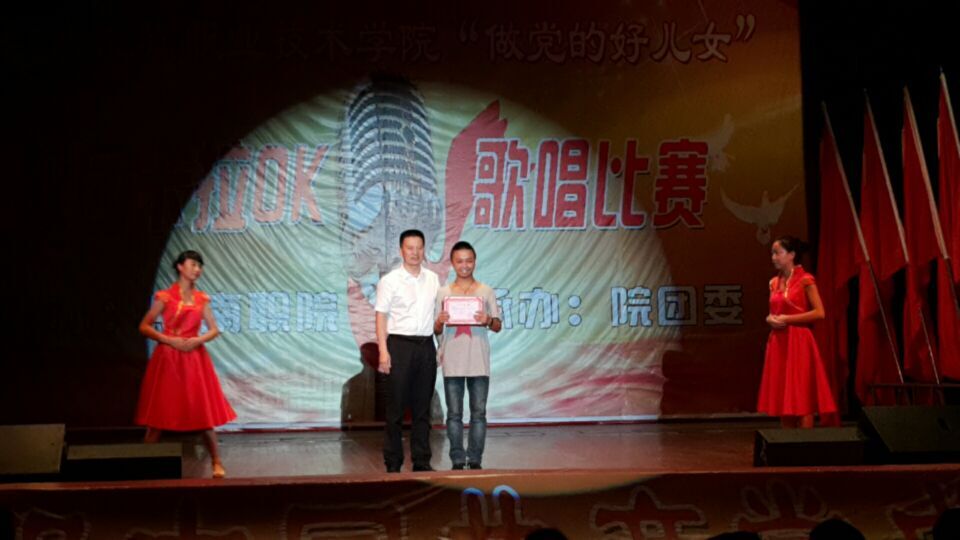 6月25日晚,学院“做党的好儿女”卡拉OK歌唱比赛在南区讲学厅举行。代表我系参赛的龙英老师和蔡小辉、杨定宏两位同学,他们用优美动听的歌声征服了在场的观众,最终脱颖而出――龙英老师和蔡小辉同学分别包揽了教师组、学生组一等奖,杨定宏同学获得学生组三等奖的好成绩。