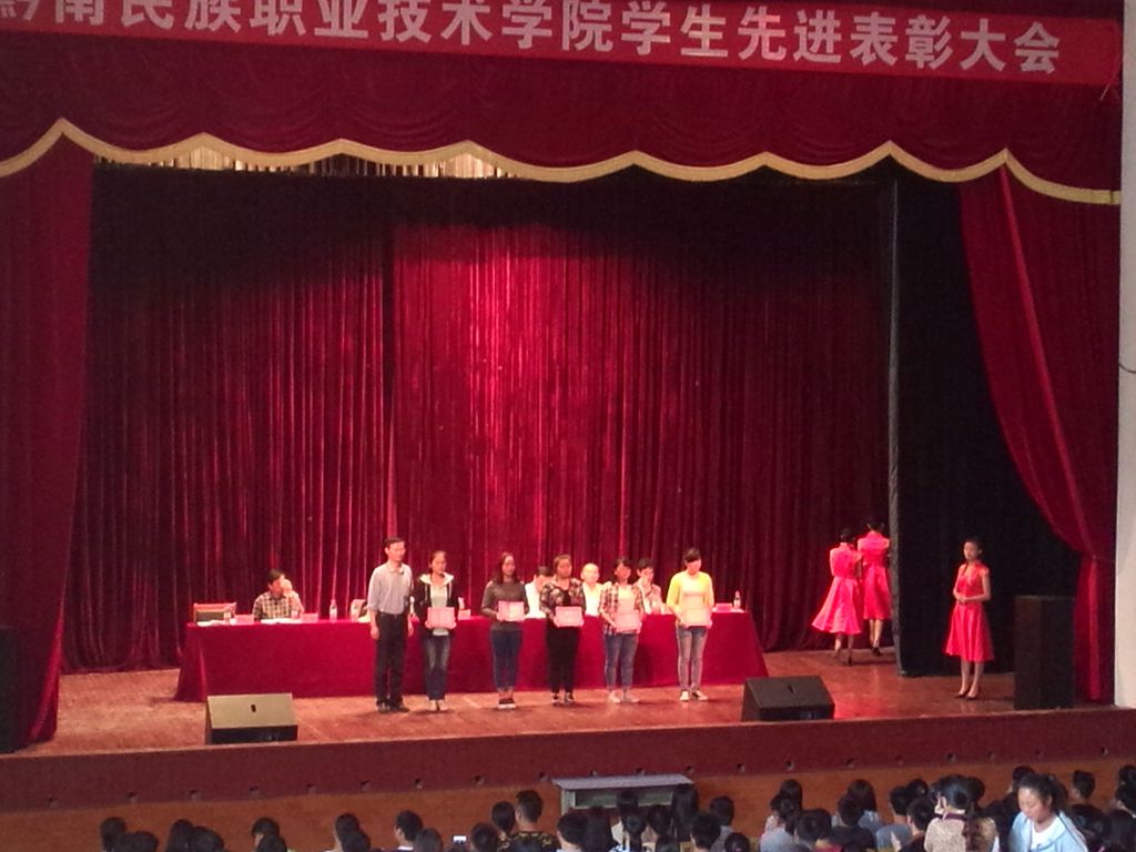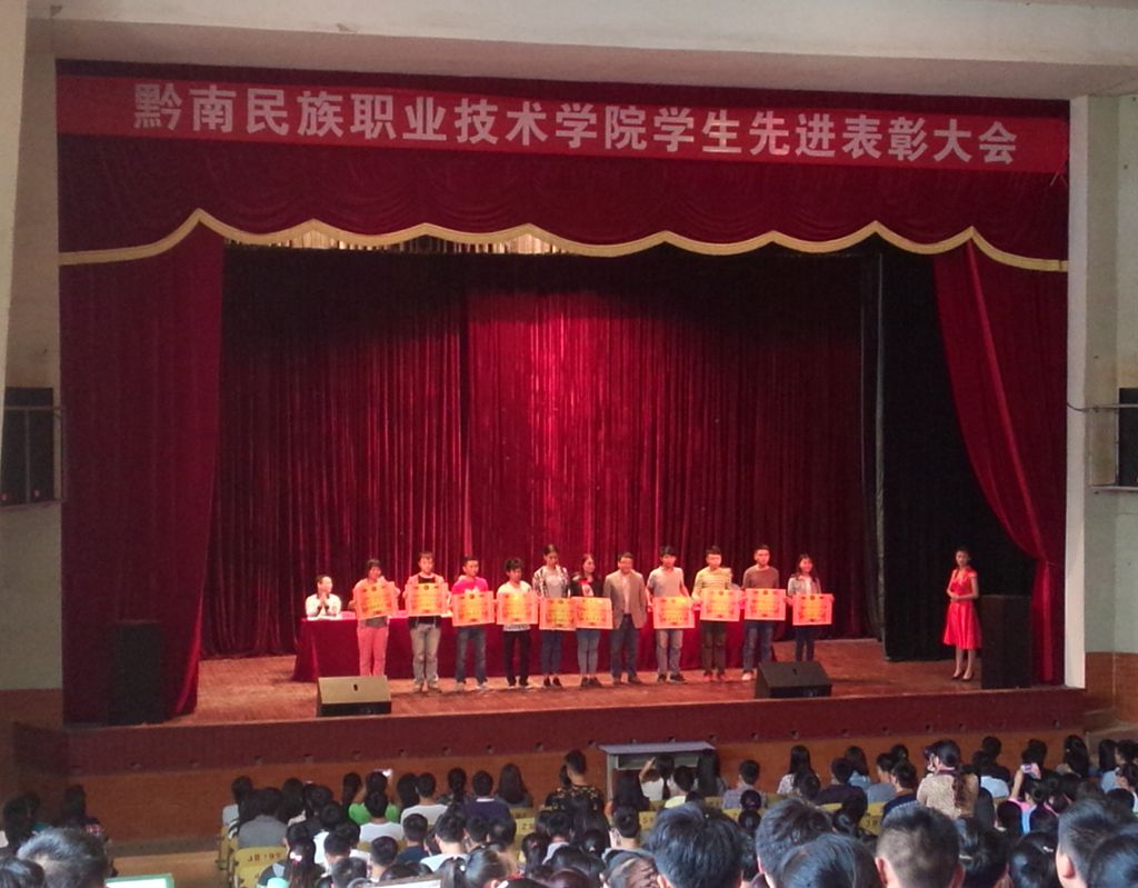 10月15日下午2点30分,我院在南区讲学厅召开了“黔南民族职业技术学院2014学年度学生先进表彰大会”。经过一年的努力拼搏,我系涌现了许多优秀的集体和个人。其中,2013会电(1)班、2014物流管理班、2014会电(2)班被评为“优秀班级”,郑维珍等4名同学被评为“三好学生”,石本兰等30名同学被评为“优秀学生干部”。与此同时,郑维珍等5名同学获得了学院“一等奖学金”,潘启看等7名同学获得了“二等奖学金”,刘露莎等11名同学获得了“三等奖学金”。