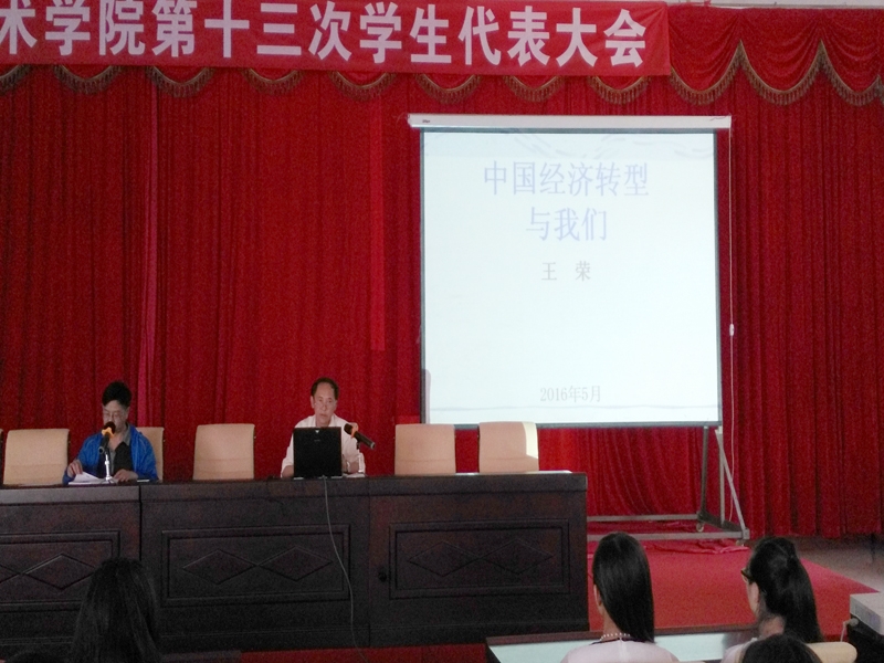 5月31日下午,我系会计电算化专业指导委员会成员、原黔南州财政局总会计师、现黔南州工程咨询中心、黔南州政府投资项目评审中心高级经济师王荣在中区食堂三楼会议室给我系2015级学生及部分计科系学生200多人进行了“中国经济转型与我们”的知识讲座,王荣同志从中国当前经济发展现状、面临的困难以及我们如何应对等方面给学生作了一场生动的讲座。拓宽了学生的视野和知识,受到学生的普通欢迎。