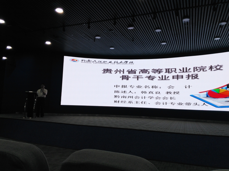 9月6—8日,由学院院长饶辉率队,我系申报省级骨干专业的会计专业部分教师在盛华职院参加了由省教育厅主办的贵州省高等教育人才培养质量提升工程项目“2016年省级骨干专业现场评审会”, 参加此次答辩的骨干专业,是由贵州省各职业院校通过校内评审推荐,经过教育厅专家组材料评审环节后公示入围的30个骨干专业,通过抽签分组进行答辩。我院抽取的答辩顺序为24号,饶辉院长、会计专业带头人韩真良、骨干教师高雯霓、专业教师褚钰捷作为答辩人于9月8日进行了答辩。学院评建办、教务处率各系观摩人员共20余人到场为我系答辩团加油助阵,为确保此次答辩顺利完成,做了大量的工作。答辩现场,饶辉院长进行了会计骨干专业建设顶层设计演示,会计专业带头人韩真良教授进行了会计骨干专业建设演示,骨干教师高雯霓和专业教师褚钰捷分别进行了《会计电算化》核心课程和《财务管理》课程的说课展示,四位答辩人员以最饱满的精神和充分的准备完成了各环节的答辩,给大家呈现了一场生动精彩的教学成果展示,领导和老师们精彩的陈述赢得了在场领导、专家、同行和观众们的阵阵掌声。