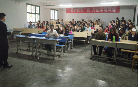 会议开始,有我们的系学管主任给我们介绍了作为一名干部在集体中的地位和作用。其次,他在班级管理中的职责作了说明,使干部明白自身所肩负的责任与发挥的纽带作用。
