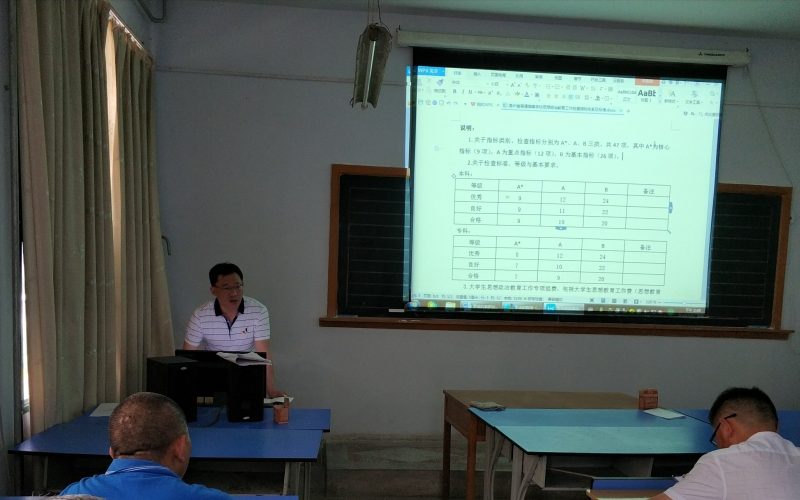 杨文书记带全系教师了解我院2018年的基本情况以及介绍思政评估过程中的各指标体系、评估标准。