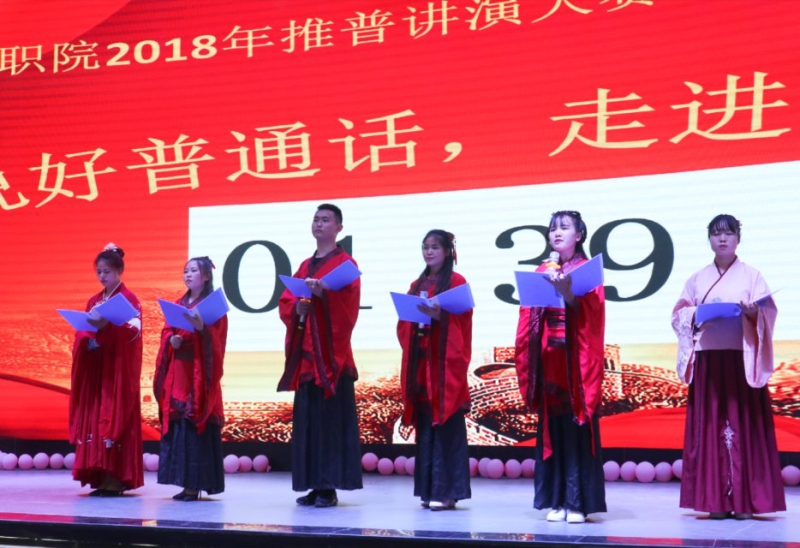 为全面落实《国家语言文字事业‘十三五’发展规划》,学院于2018年9月20日下午14:30在知行楼一楼学术报告厅隆重举行了“说好普通话,走进新时代”推普讲演大赛。