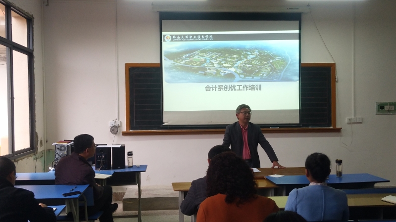 为了顺利通过专家进校评估,我系全体职工熟悉学院创优申报材料,2018年10月18日下午14:30在综合楼二楼多媒体六教室举行创优工作培训会,会议由会计系系主任韩真良主持,会计系教学副主任刘天和主讲。
