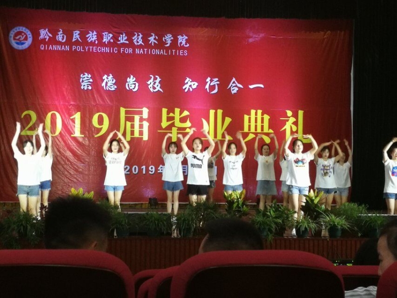 首先,由韩真良书记上台致词表示对毕业生在校取得优异成绩的肯定,对他们未来生活的美好祝愿同时也为本次活动拉开帷幕。舞台上精彩的舞蹈是学子们的热情,对学院有多热爱舞蹈便有多精彩。表演者流下的是汗水,毕业生流下的是热泪。其次是优秀学生代表上台发言,学生代表在发言中总结在校进步与成长,还表示了对学院的感恩,对老师及学生们的美好祝福。然后,活动尾声,由黔南职院饶辉院长上台发言,饶辉院长说到:“我们应该心怀感恩,感恩母校的悉心栽培,感恩三年来老师和同学的关心,不管未来你们走到哪里,母校的大门永远为你们敞开,愿你们都前程似锦,愿学院的明天更加辉煌,”同时也对本次活动的开展表示表扬和肯定。最后由毕业生为其班主任献花表示感恩,伴随着歌曲《我的未来不是梦》现场所有老师,同学上台在签字横幅上签字并合影留念。