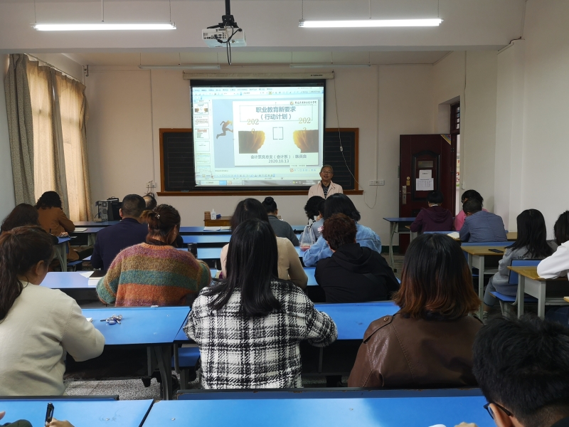 10月14日下午,会计系组织全体教职工在立信楼多媒体六召开“职业教育新要求(行动计划)”学习培训会,会议由党总支书记韩真良主持。