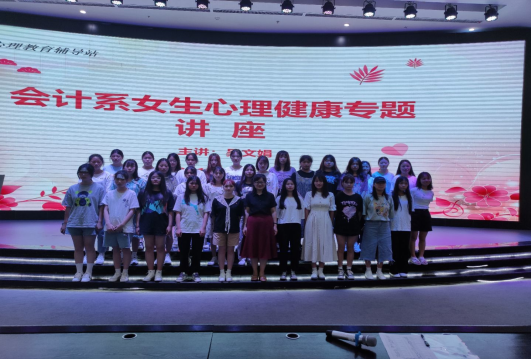 为了帮助我系女生树立正确的人际观、交往观、恋爱观,形成自尊自信、理性平和、积极向上的健康心态,促进女大学生身心健康,会计系于2021年6月17日19:00在知行楼学术报告厅组织了“女生心理健康教育”专题讲座。2019级、2020级各班心理委员及各班8名女生代表参加了讲座。本次讲座由会计系党总支纪检委员、学生工作党支部书记吴文娟老师主讲。