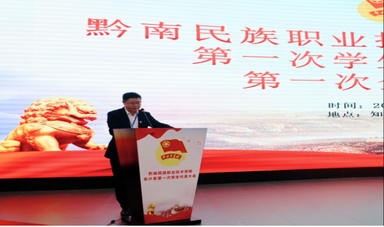 黔南职院会计系刘天和主任致开幕词,他指出本次大会是在学院党委、系党总支的正确领导和院团委的帮助和指导下召开的一次胜会,会计系学生会始终坚持从广大同学的实际需要出发,切实服务广大同学,是系与同学之间沟通的桥梁和纽带。希望把这次大会开成一个集思广益、民主决策的大会;一个带领全系青年学生为系发展满怀信心、开拓进取的大会。