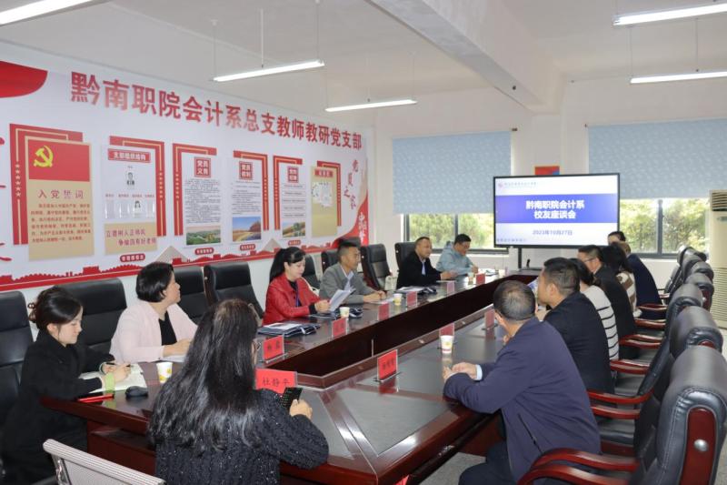 2023年10月27日,在学院办学67年成果展系列活动展开之际,我系举办了2023年会计系校友座谈会,邀请到贵州商学院教授刘玲娅(82级商贸会计专业校友),国家税务总局黔南布依族苗族自治州税务局第三稽查局副局长、一级主办刘达忠,平塘县政协副县长级干部郑传富(93级财税专业校友)以及长顺县工业园区管委会党工委副书记王成辉(99级房地产开发与管理专业校友)参加,我系参加座谈会的还有,会计系党总支委员韦仲园、莫才义、周清清、钟沂、何欢,邹奎教授、王晓玲老师、杜静萍老师、杨明智老师以及杨露老师,座谈会由会计系系主任刘天和主持,会议在同德楼二楼会议室举行。