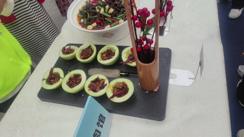 在志愿者的协助下,参赛选手完成家乡美食烹饪制作环节,居民分享美食背后的故事与文化,现场氛围热烈。