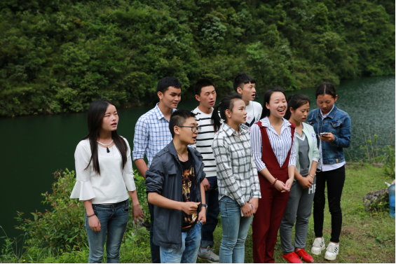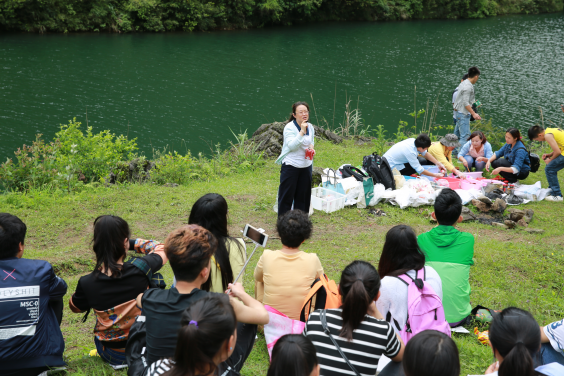 在活动中,滕晓梅老师一边带领同学们欣赏大自然的山水之美,一边为同学们讲解《论语.雍也篇》“知者乐水,仁者乐山;智者动,仁者静;智者乐,仁者寿”,引导同学们对大自然的欣赏,不能只停留在忘情所以、流连忘返的层面,还要看到这里包含着更多可供深入思考的内容和感悟;随后,根据事先分组情况和活动计划,各小组还表演了一个与传统文化相关的节目,或诗歌朗诵、或歌曲演唱,思政部黄云霞老师也为同学们深情演唱歌曲《我们是一家人》,活动最后以全体同学集体朗诵《陋室铭》结束。整个活动既严肃又活泼,同学们陶醉在大自然的美景中,不仅身心得到愉悦,而且陶冶了情操,思想境界得到升华。