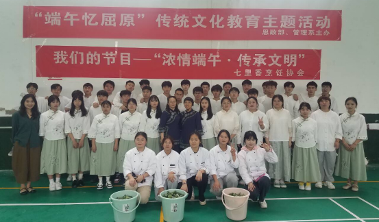 为进一步弘扬优秀传统文化,传承中华传统美德,厚植学生爱国情怀,由思政部、管理系主办、学院“七里香烹饪协会”社团承办的“端午忆屈原-学文化、读经典、包粽子”传统文化教育主题活动于5月25-28日举行。
