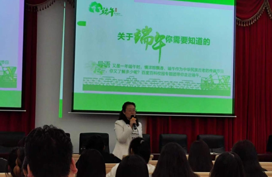 第一阶段为理论讲座。思政部教师滕晓梅和退休教师黄云霞利用课余时间在学生中开展《端午忆屈原》专题讲座。讲座从端午节名称说起,向同学们介绍了端午节的起源、传说,及相关习俗,指出过端午不只是吃粽子、赛龙舟、挂艾叶菖蒲等活动,更重要是纪念我国伟大的爱国主义诗人屈原。屈原是中国第一位伟大的诗人,是被公认的中国诗歌之父,是中国的诗魂、国魂、民族魂,纪念屈原就是要学习他爱国忧民、坚持真理、“九死不悔”、“上下求索”的精神和他壮怀激烈的气节和风骨以及不屈不挠的执著毅力,并要把这种精神转化为实际行动----为了国家和民族的利益而前赴后继,为社会和谐与公平,为实现“中国梦”共同努力。讲座中,老师还为同学们介绍了屈原的代表作《离骚》,并带领同学们进行朗读。