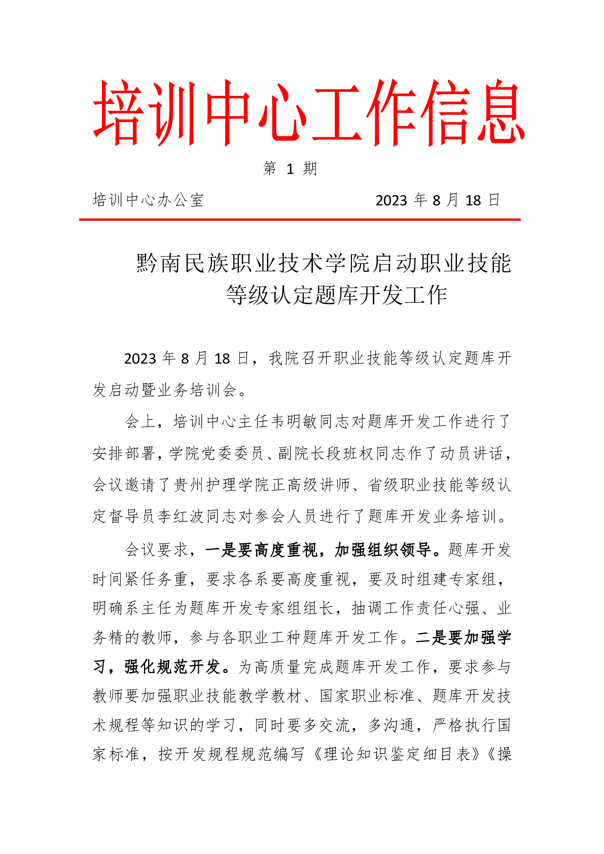 - 黔南民族职业技术学院启动职业技能等级认定题库开发工作2023-08-22