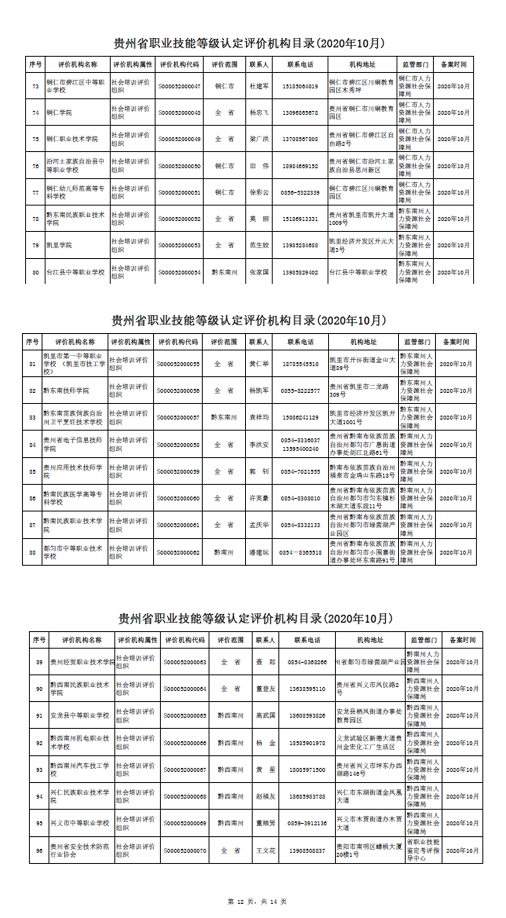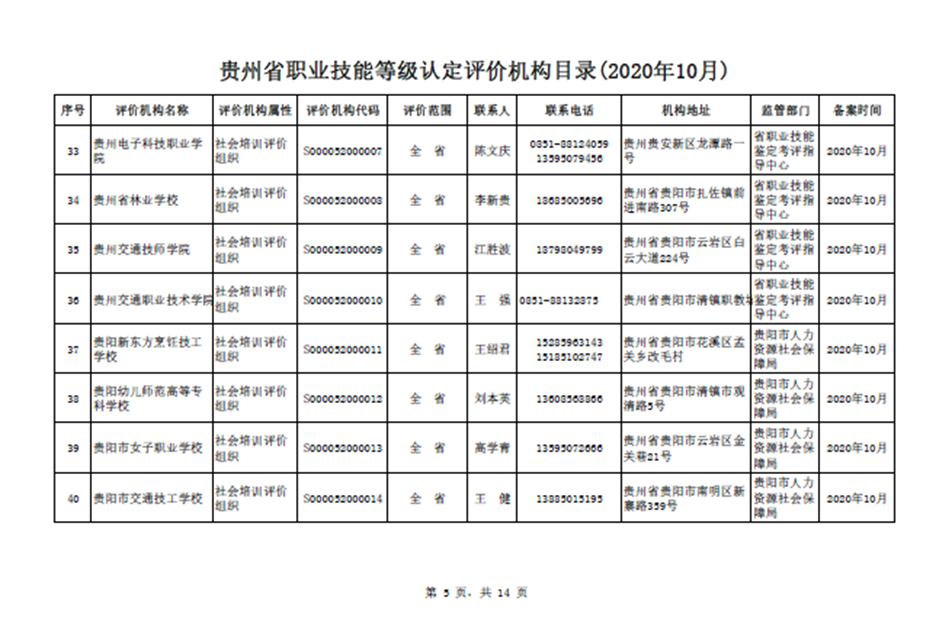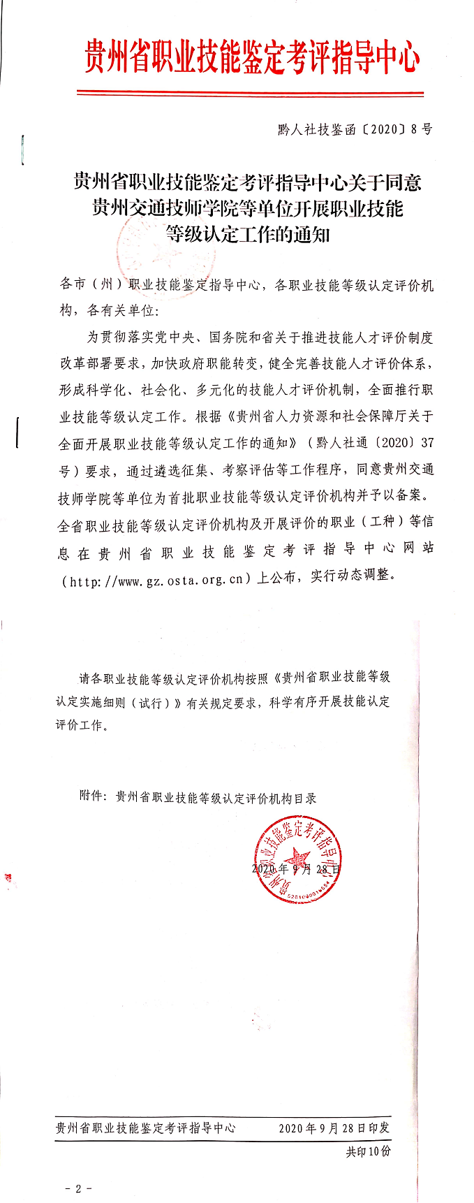 贵州省职业技能鉴定考评指导中心关于同意贵州交通技师学院等单位开展职业技能等级认定工作的通知