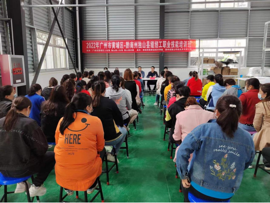 本次培训班一大特点为跨省合作,由广州黄埔区负责培训资金,广州企业在独山县办厂提供培训场所,独山县人社局、县妇联负责统筹协调和监督培训过程,黔南职院负责提供技术支持,通过政、校、厂跨省跨区域合作,为移民搬迁户免费提供技能提升培训服务,实现了家门口学技术,社区内进工厂,让老百姓切身感受到党和国家的惠民政策。