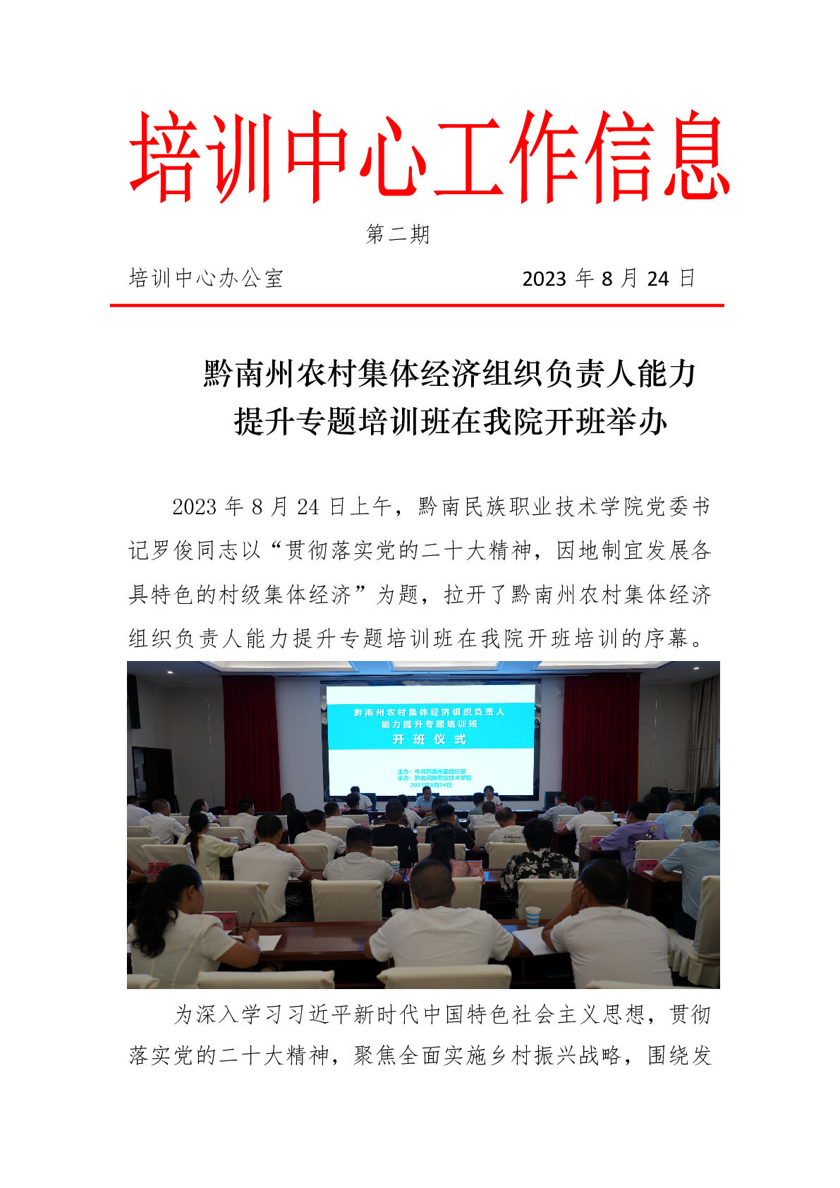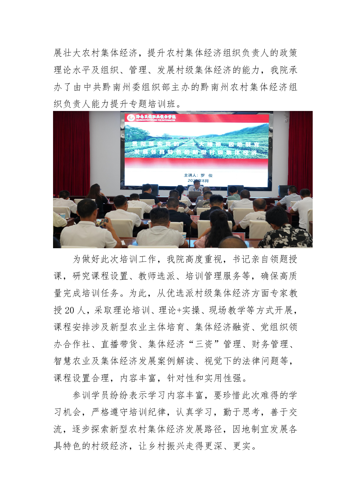 2023年8月24日 黔南州农村集体经济组织负责人能力提升专题培训班在我院开班举办