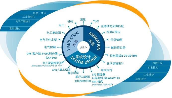 该软件适合中、高等院校进行教学课程设计、教师备课、教师与学生互动、学生考核、培训等教学活动。通过软件实现在课堂中验证所学理论,以全彩方式动态展示系统行为,加强对不同系统相互作用的理解,直观地测试所有类型的系统,使多种系统集成展示更便利,在虚拟系统上加强教学和学习,容易地集成到课程内容中,可以容易地被老师和学生使用
