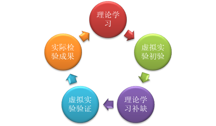 YL-Famic软件与亚龙现有的实训设备进行进一步的整合,融合进入亚龙的实训设备的课程体系中,开发自动化生动课堂,点破理论与实际设备应用中的教学界限,学生在理论中学习,在虚拟实验室中进行直接验证,最后到实际设备中得到成果。图(1-2)学习模型