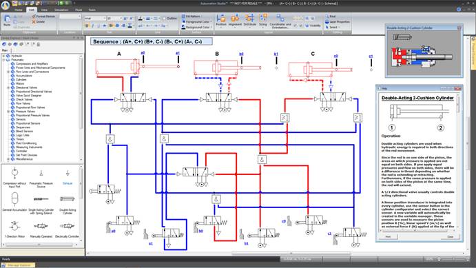 提供了各种气动和液压元件的实物图片、工作原理剖视图、3D 模型和详细的功能描述。包含了液压和气动两部分,液压仿真包括多种控制阀,压力控制阀,调速阀,调速回路,压力回路,快速运动回路,速度换接回路,换向回路,锁紧回路,多缸动作回路;气动仿真包括气源装置及气动辅件。各种气动和液压元件的实物图片、工作原理剖视图和详细的功能描述。各种回路都逼真地模拟这些元件的工作过程及原理。便于在教学中老师的讲解和学生对气动元件工作原理的理解掌握。该软件还具有多个教学影片,讲授了重要气动回路和气动元件的使用方法及应用场合。有利于学生了解和掌握机电一体化技术在工业现场的应用状况,提高了学生的学习兴趣,激发学习的主动性。