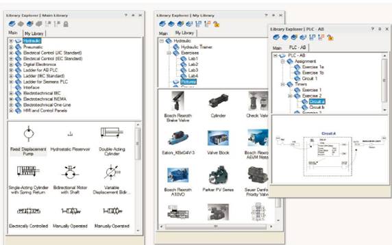 其符合ISO 1219 - 1和1219- 2标准,液压库(工业和比例)提供了所需的所有组件符号来创建移动和工业液压系统和功能。 组件是预先配置的。此外仿真性能曲线等参数,外部负载、泄漏、粘度、热特性可以根据需要配置。图2-1