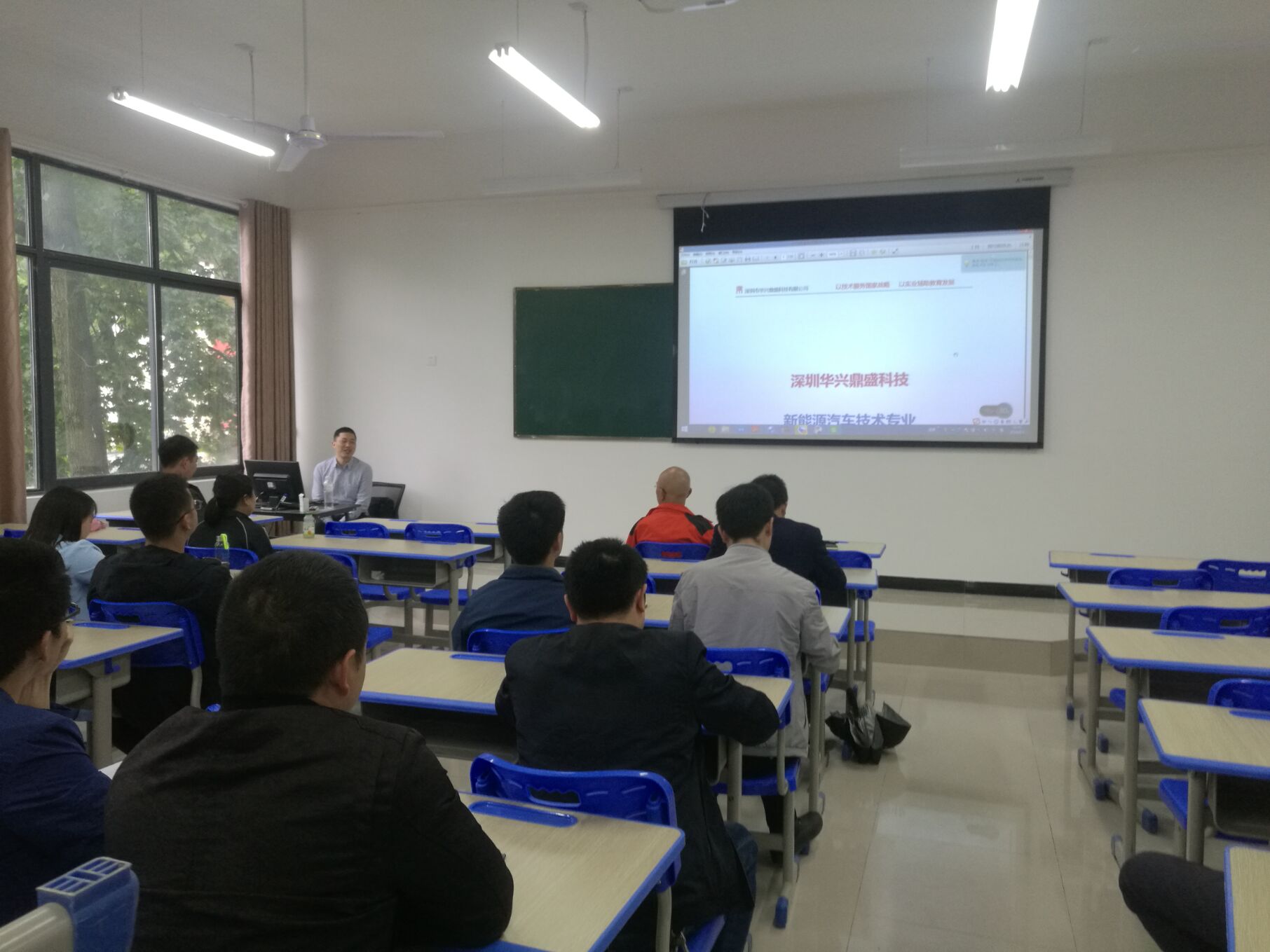 2018年5月3日,深圳鼎盛有限公司的高经理一行参与了汽车工程系汽修教研室的新能源汽车人才培养方案的研讨,高经理从事汽车教学十多年,从行业分析新能源汽车专业建设的必要性和可行性,从市场岗位需求分析新能源汽车专业的课程设置,在专业核心课程的“三电(电子、电器和电池)”以外,建议开设专业基础课辅助专业核心课程的开展,最后,高经理给汽修教研室教师分享了其他院校新能源汽车的人才培养方案。
