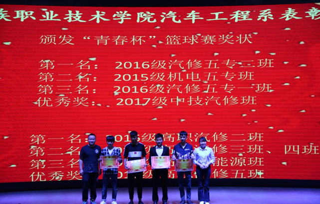 本次活动首先对系团组织活动中表现突出的先进班集体、先进个人、“青春杯”篮球比赛中获奖的班级及优秀裁判员进行表彰。希望获得表彰的先进班集体和先进个人戒骄戒躁,砥砺前行继续创造更好的成绩。