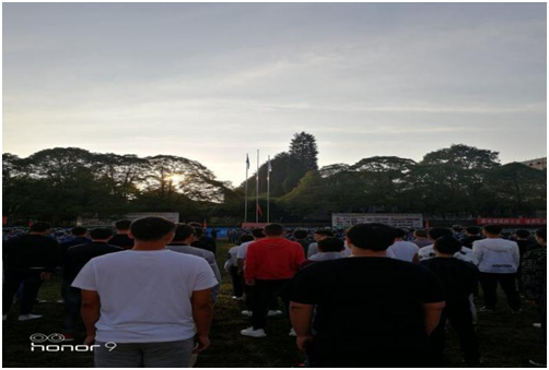 为体现黔南民族职业技术学院国防特色办学理念,增强同学们的爱国意识。2018年9月10日早上7:20,"汽车工程系第五周升旗仪式"在中区足球场举行。参加此次活动有赵有能、张德高老师、民兵分队、护校队、16级全体同学及18级全体新同学。