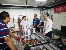 图2 王占彪老师向州领导介绍“工业数据采集与控制模拟系统”