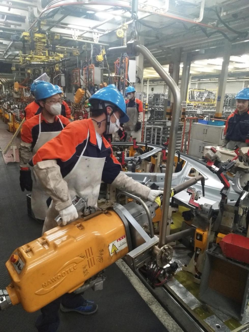 朱启旺同学在进行焊装作业