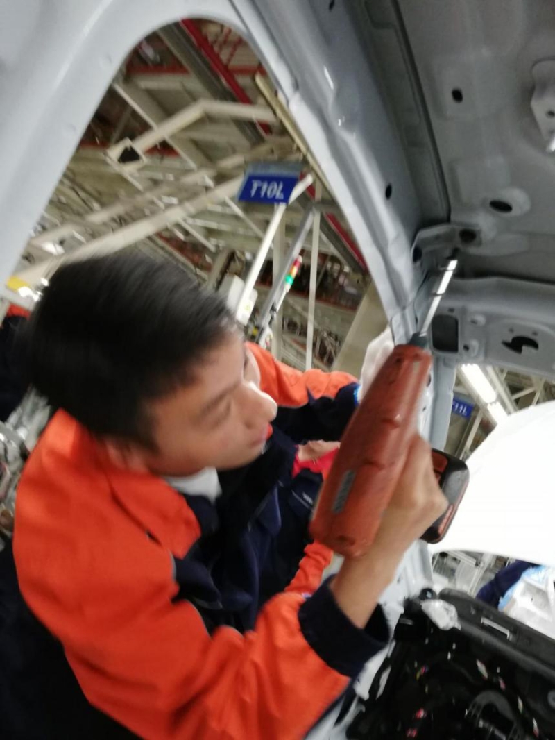 刘仕勇同学在一丝不苟地进行螺钉紧固检查作业