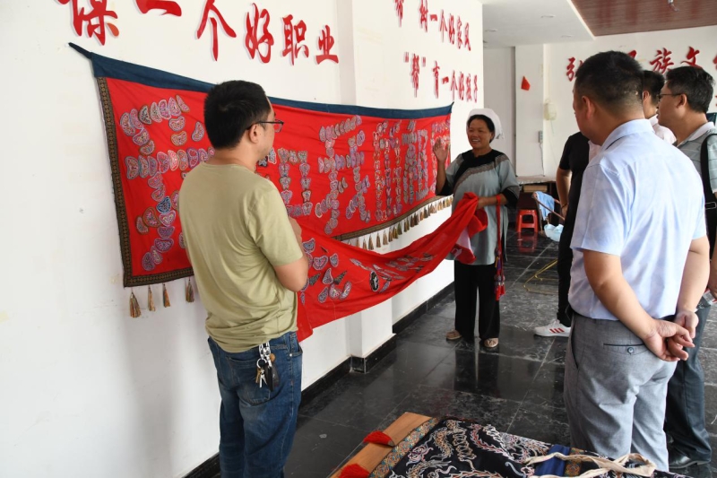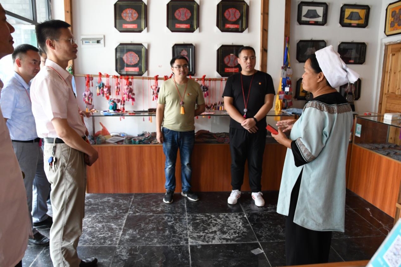 团队到达三都水族自治县参观当地国家级非物质文化遗产保护名录——马尾绣,与贵州民族民间工艺大师韦应丽进行深入访谈,了解马尾绣的起源、文化,民族特色。中国青年网通讯员 戴渊志 摄