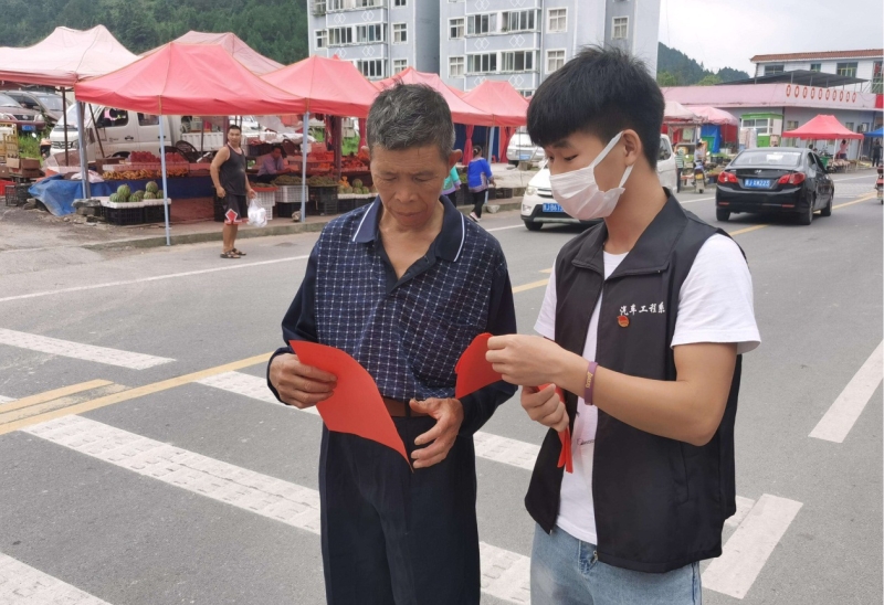 队员们走街串巷向居民分发安全用电宣讲手册,并联系生活实例,从电器的安全隐患、家庭用电常识、触电后采取的救护措施三方面向来往的居民系统阐述安全用电的必要性和重要意义。中国青年网通讯员 卢俊男 摄