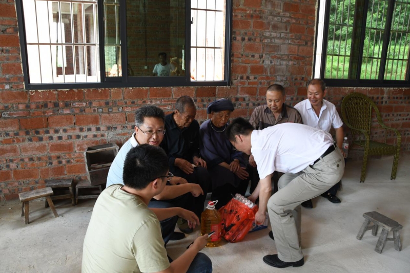 在当地干部的带领下,队员们和指导老师带上礼品去往当地的贫困家庭走访慰问,为他们送去关爱。中国青年网通讯员 戴渊志 摄 团队来到贫困户的家庭中,为他们送上花生油、牛奶等生活物资,并且陪伴老人们聊天,让他们感受来自社会的温暖。中国青年网通讯员 戴渊志 摄 另外一户贫困家庭中的代表为队员们讲述自家的生活情况,队员们了解到这个家庭主要靠着传统务农来维持生计。家庭收入低,加上妻子患病,需要大量资金医治。中国青年网通讯员 戴渊志 摄 团队与贫困户围坐在一起,了解贫困户致贫原因。针对贫困户家庭存在的实际困难,与村民一起谋划产业发展、探讨脱贫良策,帮助贫困户家庭发展生产,脱贫致富。中国青年网通讯员 戴渊志 摄 团队结束活动后进行合影留念。团队在活动中深刻意识到,青年学子应该肩负起责任,努力提升专业综合素养,切实的帮助群众解决身边困难,决胜脱贫攻坚贡献智慧和力量。中国青年网通讯员 戴渊志 摄