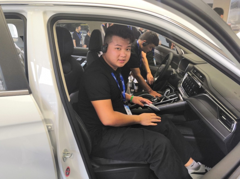 吉利汽车“十大工匠大师”之一张亮给同学讲解汽车制造