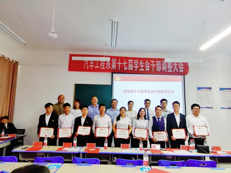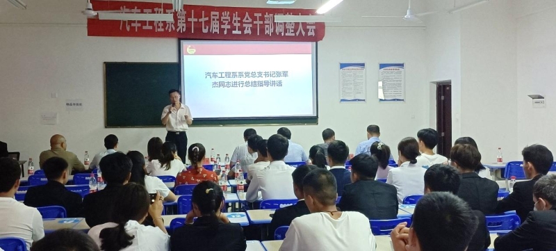 2020年8月25日下午,汽车工程系第十七届学生会干部调整大会在北区匠心楼312教室举行。大会在系团总支书记邢群利老师的开场致辞中拉开了序幕:学生会是学生进行自我管理、自我教育、自我服务、自我监督的组织,是联系老师与学生之间的纽带和桥梁,在教育教学、学生管理、校园文化建设中发挥着不可替代的作用。转眼间,汽车工程系第十七届学生会干部的任期接近尾声,换届对于“老人”而言是离开的不舍、对“新人”来说是责任的担当,能使另一批优秀青年才俊们在更广阔的舞台上施展抱负,这便构成了学生会换届的意义。