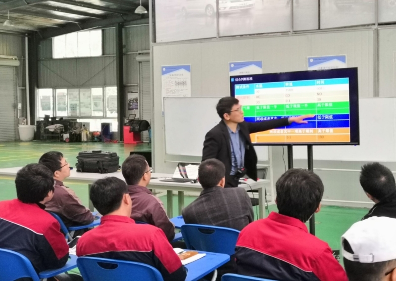 刘树新老师以“汽车尾气诊修技术与产品”为题,从尾气排放超标的原理层面切入,结合机动车维修企业开展的典型尾气排放超标维修治理案例进行深入分析,让参与培训的都匀市东匀汽车修理厂、黔南州环通机动车维修有限公司、都匀市腾飞汽车修理有限公司等多家企业的从业人员在尾气治理方面有了更多的收获。同时汽车工程系汽修专业教师全程参与学习,将企业维修实际工作理念进一步融入到课程教学过程中去,以促进“汽车(I/M)检测与排放控制治理技术”课程教学质量的提升,为进一步提升专业教师专业技能水平添砖加瓦。