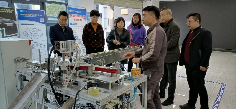 10月22日下午,在黔南州工信局党组成员、副局长王龙现,都匀市工信局副局长刘国勇等陪同下,贵州省工信厅科技处陆华处长等一行到位于黔南职院北区的黔南州先进装备制造协同创新中心调研,走访了我院引进的产教融合型高科技企业——都匀市大隆传动机械有限公司、黔南职院汽车工程系新能源实训室、智能机器人实训室等,参观了黔南州先进装备制造协同创新中心成立以来取得的标志性成果,并了解了该中心未来的建设思路。陆华处长认为:利用政府部门的公信力,在全省范围内建立工业云平台,将工业生产的前端设计人才、中端加工和检测企业、后端销售平台和团队集成到工业云平台上,整合资源,创新引领,带领贵州省工业水平上一个新台阶。