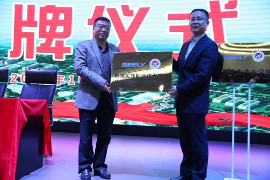 会上,学院罗俊书记与吉利汽车集团林乃挺部长共同为“吉利汽车产业学院”揭牌,同时,罗俊书记向吉利汽车集团授牌“黔南民族职业技术学院实习实训基地”。张泽宽副院长与谷建刚副总经理签署“吉利汽车产业学院合作协议”。吉利汽车集团将与我院共同制定吉利公司精英班学生招收标准和专业人才培养方案;以工学交替的“教学工厂”和实践教学的“现场案例分析”模式,强化学生的实际操作能力,并在培养过程中加入吉利公司企业文化;采取新型学徒制课程教学,开发活页式、工作手册式具备企业特色的教材,将企业文化融入教学课程,加强文化、专业技能等基础课程教育,制定课程考核标准;共同组建一支由企业员工、学校教师组成的“双导师”教学团队。校企双方协作共建,让进入吉利汽车产业学院的学生能学在吉利、留在吉利、扎跟在吉利,为学生发展提供最有力的保障。双方还就2019级和2020级顶岗实习计划做了相关方案的探讨。