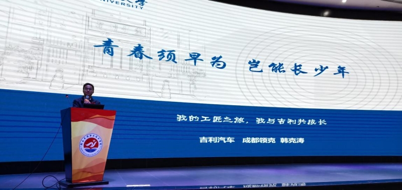 11月26日,作为我院在建的吉利汽车产业学院项目实施内容之一,吉利汽车集团派出成都公司青年专家韩克涛到我院为汽车工程系全体在校师生做了题为“青春须早为,岂能长少年”的讲座,讲座由汽车工程系党总支书记张军杰主持,采用线上线下方式同步进行直播。