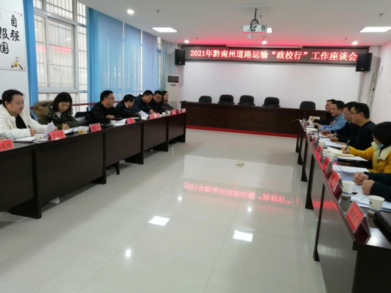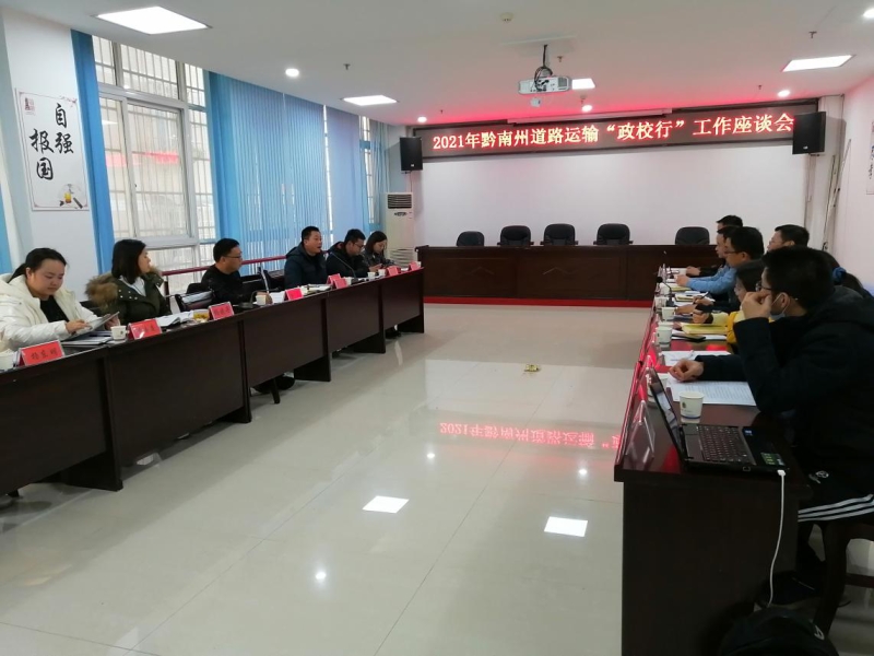为落实国家“一带一路”建设和“交通强国”发展战略,按照《国家职业教育改革实施方案》、《国务院办公厅关于深化产教融合的若干意见》、《贵州省职业教育兴黔富民行动计划建设项目实施方案(2020-2020年)》、《职业教育提质培优行动计划(2020-2023年)》文件要求,1月14日,黔南民族职业技术学院、黔南州道路运输发展中心、黔南州汽车维修协会在黔南州道路运输发展中心举行道路运输“政校行”三方工作座谈会暨贵州省道路运输产教融合实训基地申报工作布置会。此次会议主要是三方单位汇报2020年工作开展情况和明确2021年贵州省高等职业教育兴黔富民行动计划高水平专业化产教融合实训基地建设项目工作任务安排。黔南州道路运输发展中心柏虎主任、黔南州汽车维修协会唐林会长、我院汽车工程系党总支张军杰书记、系行政负责人万东操及相关工作人员参加。