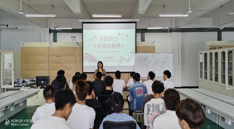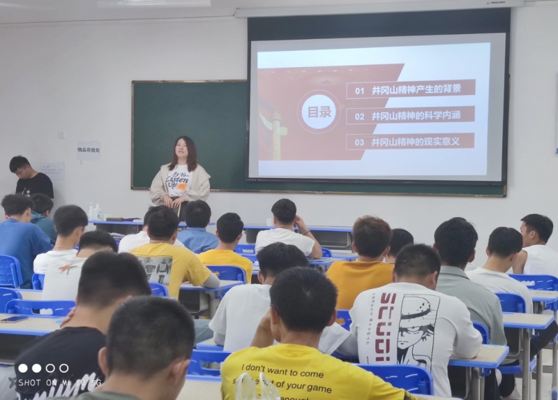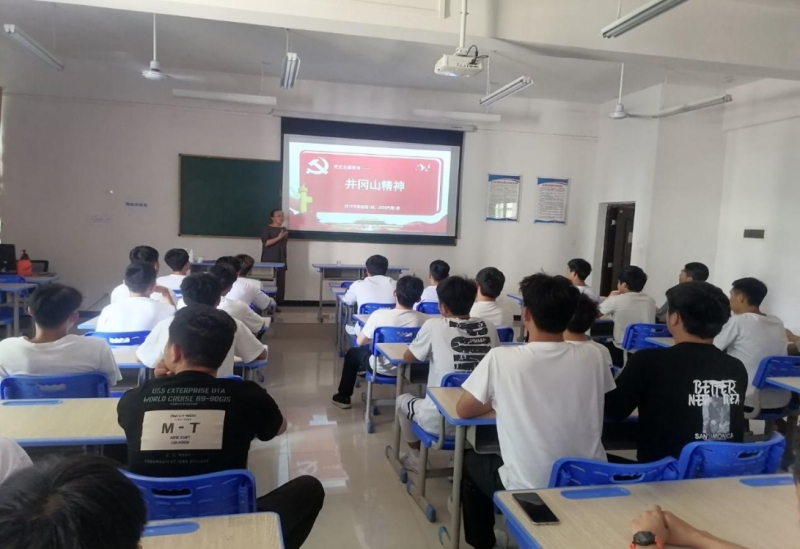 活动中,系辅导员、各班班主任给学生讲授了在二十世纪二十年代后期,毛泽东、朱德等老一辈无产阶级革命家领导湘赣边界军民在井冈山创建中国第一个农村革命根据地。根据地全盛时期面积达7200平方公里,人口约50余万。井冈山革命根据地的建立,是马克思主义与中国革命实践相结合的典范,是“以农村包围城市,最后夺取全国胜利”道路的起点。井冈山的斗争从1927年10月至1930年2月,经历了创立、巩固发展和坚持斗争三个阶段。井冈山是中国革命的摇篮。井冈山的革命斗争不仅点燃了中国革命的星星之火、开辟了中国革命的独特道路,而且孕育出伟大的井冈山精神。井冈山精神的产生,是中国近现代历史发展的必然结果。作为我们党在革命斗争的艰苦岁月中形成的伟大精神和马克思主义中国化的理论结晶,井冈山精神集中反映了我们党的优良传统和作风,有着极为丰富深邃的精神内涵。井冈山精神是中华民族几千年来积淀的优秀传统与人文精神在革命战争年代的彰显和高扬。同时,井冈山精神又是具有原创意义的当代民族精神,是无产阶级革命精神和崇高风范的体现,是中国共产党优良精神传统的基础,是中国共产党革命精神之链的伟大开端。