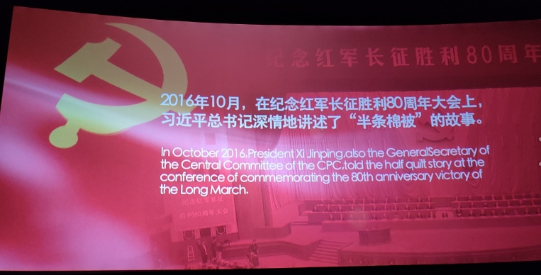 在纪念红军长征胜利80周年大会上,习近平总书记饱含深情讲述一则“半条棉被”的故事:“一部红军长征史,就是一部反映军民鱼水情深的历史,在湖南汝城县沙洲村,3名女红军借宿徐解秀老人家中,临走时,把自己仅有的一床被子剪下一半给老人留下了。老人说,什么是共产党?共产党就是自己有一条被子,也要剪下半条给老百姓的人”。这则故事,让人感动,给了我们深深的启迪。