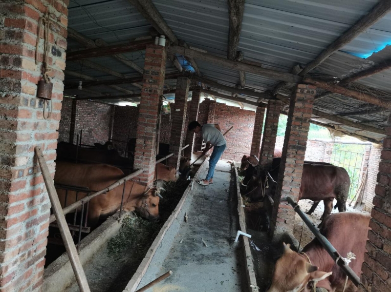 孙华毅同学在家乡的牛场帮忙养牛
