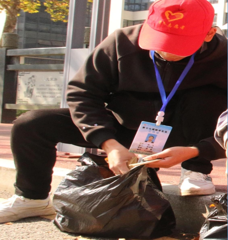 吴鑫濂同学在清扫垃圾中