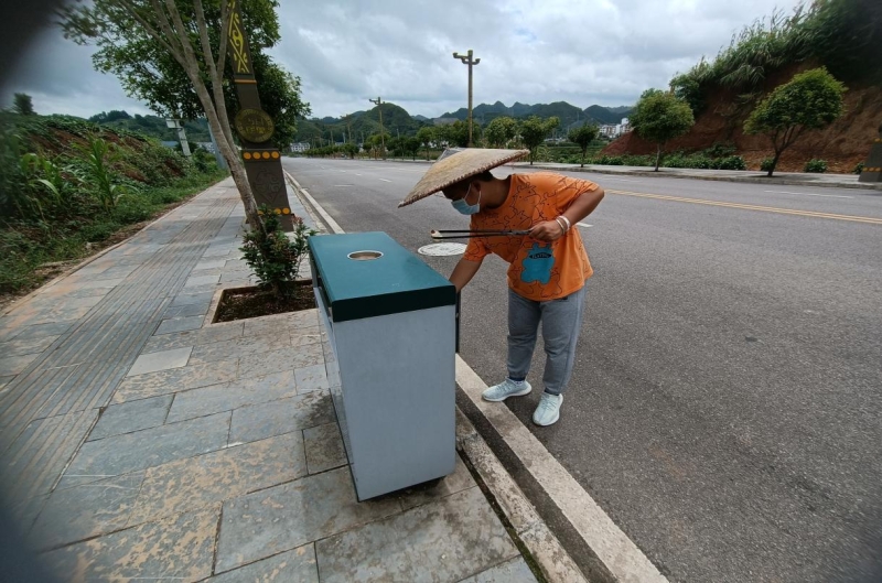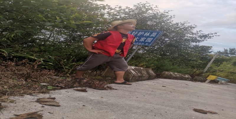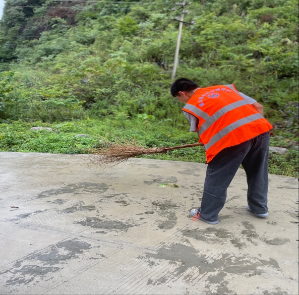 陈仕兴同学在进行乡村公路清扫、护养